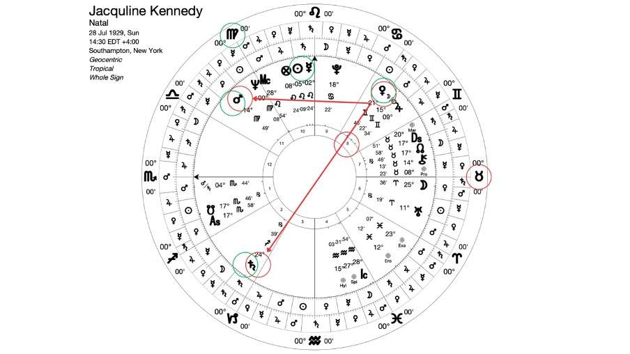 Jedna od njih je i Žaklina Kenedi – rođena sa aplikacionom opozicijom Venere iz znaka Blizanaca prema retrogradnom Saturnu u Strijelcu u svojoj natalnoj karti.